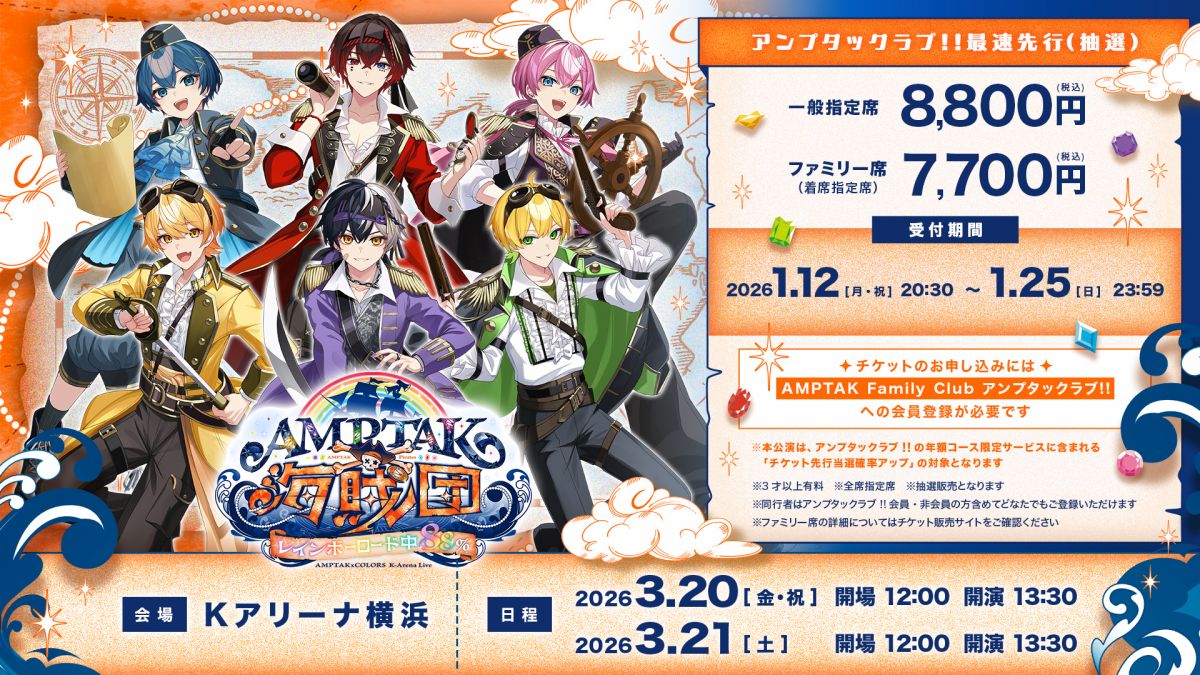 ※AMPTAKxCOLORS公式ファンクラブ「アンプタックラブ!!」年額コース限定サービスに含まれる「チケット先行当選確率アップ」の対象公演となります